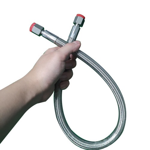 高溫鐵氟龍管總成,內層耐高溫鐵氟龍材質,外層不銹鋼編織網套,接頭可定制不銹鋼材質。